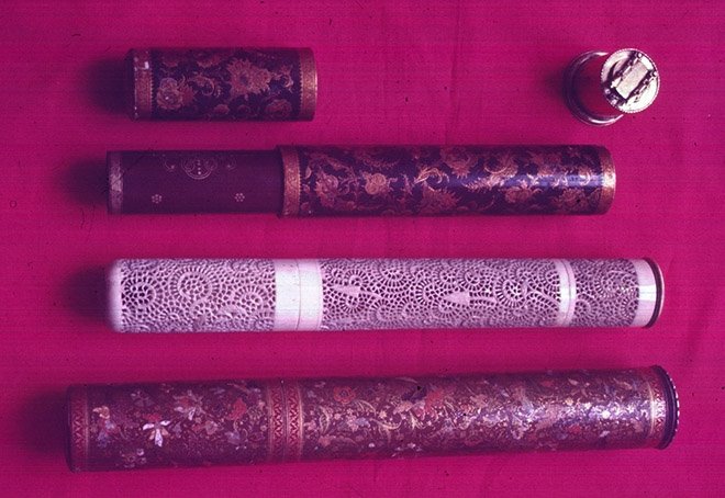 Кубуры, покрытые эмалью, и кубур из слоновой кости (посередине) / Источник: fikriyat.com