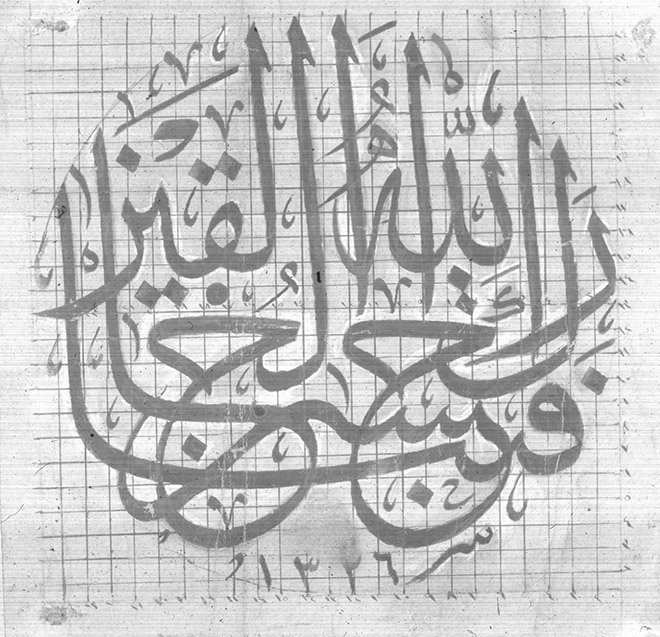 Очень большие калямы для надписей джали было трудно держать в руке. Собственно, в таком случае было невозможно добиться равномерного нанесения чернил. Поэтому такие надписи изготавливали путем увеличения мелких, разделив их на квадраты. Такой метод назывался шахматным или тарби.