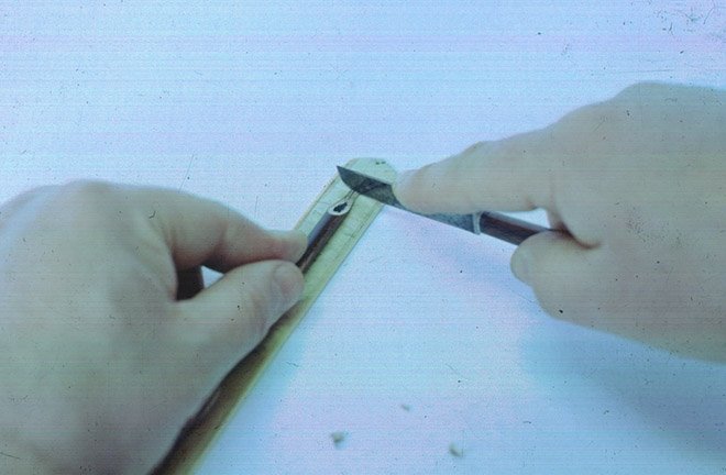 Обрезание конца тростникового каляма / Источник: fikriyat.com