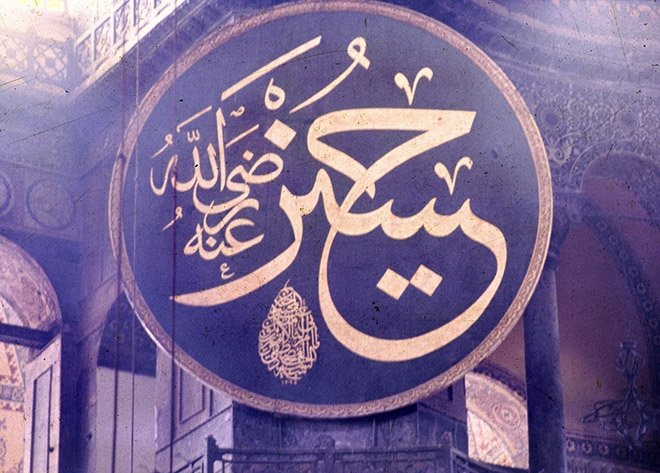 Каллиграфическое панно из мечети Айя-София. Автор Кадиаскер Мустафа Иззет Эфенди / Источник: fikriyat.com