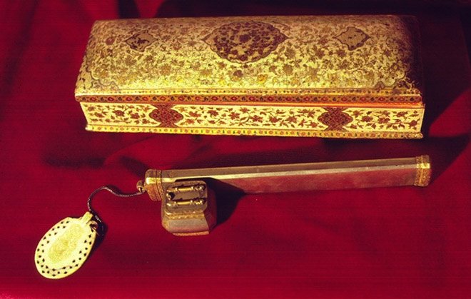 Художественная проработка и драгоценные материалы, используемые для многих из таких инструментов, явно превышают функциональные требования и свидетельствуют о престижности каллиграфии на исламских землях. Но ремесленники, создавая приспособления для письма, имели не только коммерческие интересы. Участвуя в культуре каллиграфии, и каллиграфы, и ремесленники были сознательно вовлечены в нравственную вселенную – вселенную, которая, согласно ранним мусульманским ученым, была сотворена благодаря созданию Всевышним пера – калям, пишет профессор Угур Дерман.