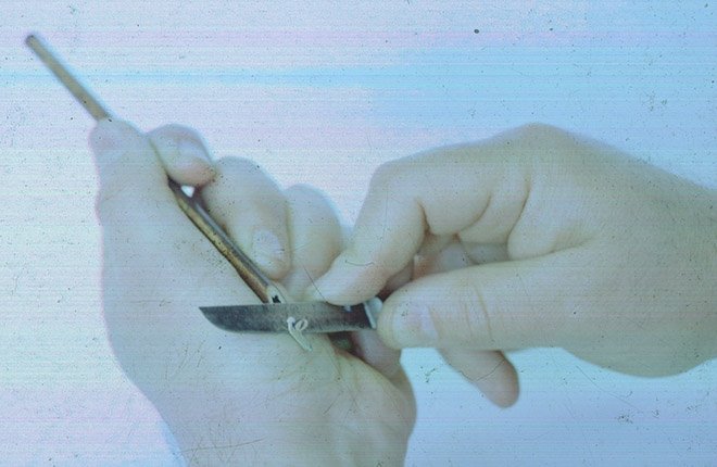 Для того что заточить калям, его кладут на левую ладонь и затачивают сверху вниз с помощью специального ножа.